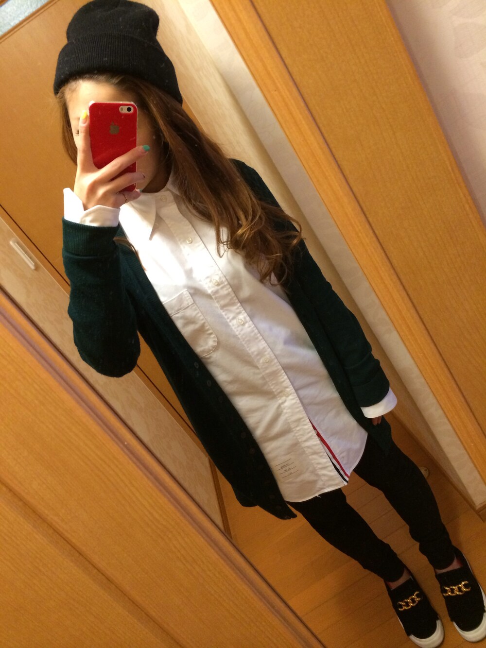 トムブラウンのシャツはメンズだから 少し大きいけど 丈とか自分の好きな感じ。 トリコロール可愛いぃ〜 形カッコィィ〜 今日も一日頑張りましょ〜((((●・ω・)ノ