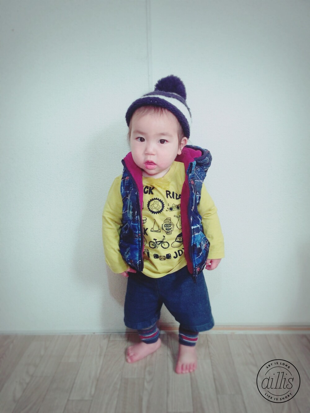 いつも見ていただきありがとうございます❤️ 1歳のお祝いにお友達にもらったトップス✨を使ってデニデニコーデ💓 ダウンベストは、デニム柄 これもお下がり☺️ よく考えたら今日のコーデ全部もらったやつだ笑😱 カッコイイ系になりました⭐︎感謝⭐︎ 予防接種行こうかな〜