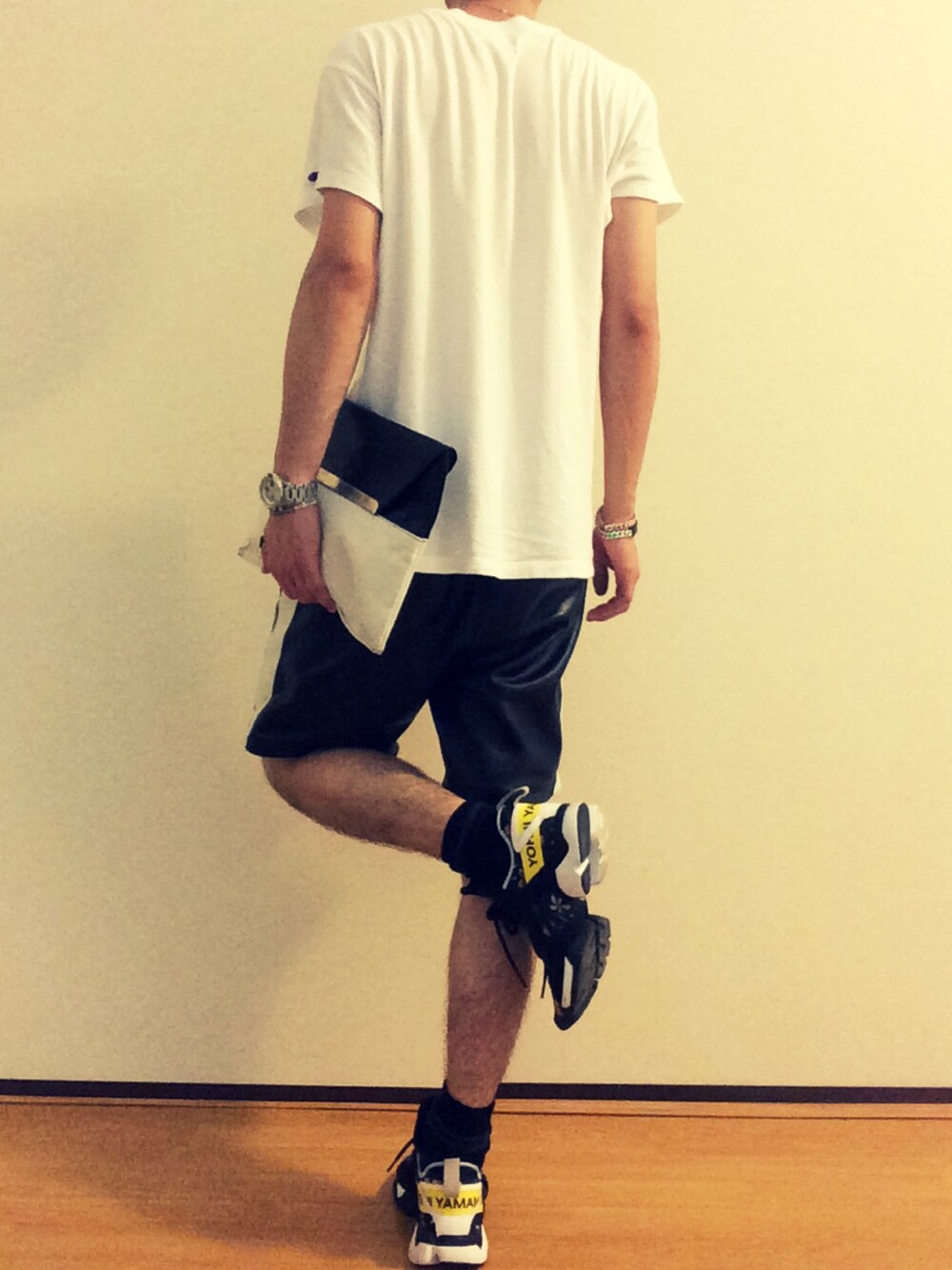 今日のコーデ 一応今日のテーマはモノトーン クラッチもバイカラーのモノトーンで合わせてみた 足元はあえてボタニカル柄で 今日は前も紹介したY3のスニーカーの後ろからのショットを(笑) なんか最近暑くて同じような感じばっかり… まだまだ暑いけど、そろそろ秋物とか着たいなー