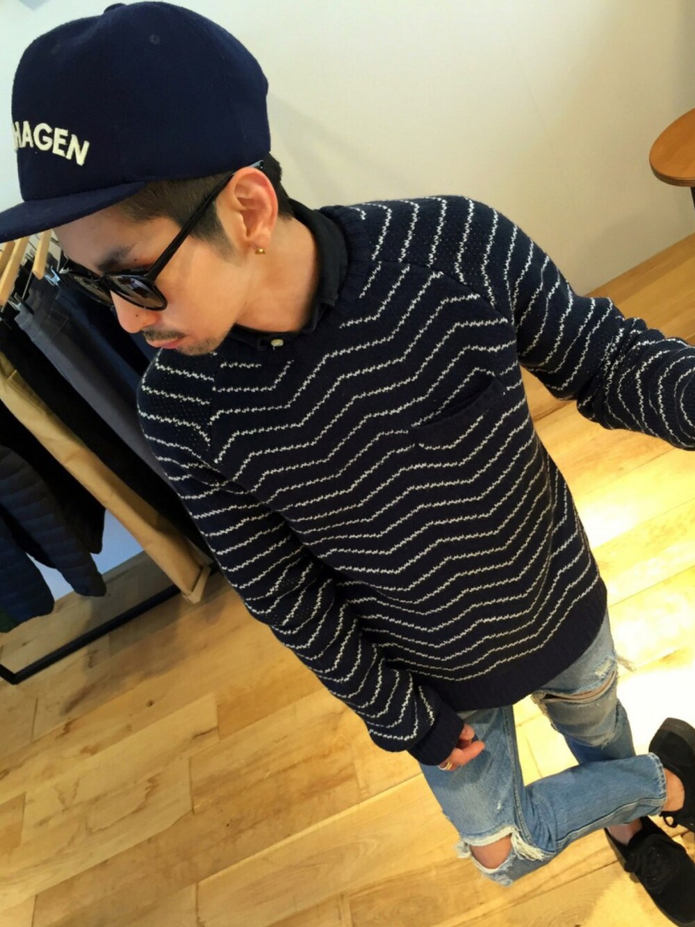 YUSUKE5のニット/セーター「Keith Zig Zag Knit Jacquard Sweater」を使ったコーディネート