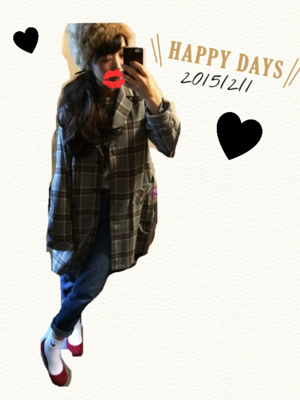 お気に入りのUngridコートを着れてhappy‼︎ 寒いから中にデニム&デニム。初めてチャレンジしました。コートを脱いだら電車男です。 そして襟足ウィッグが良い仕事しました‼︎