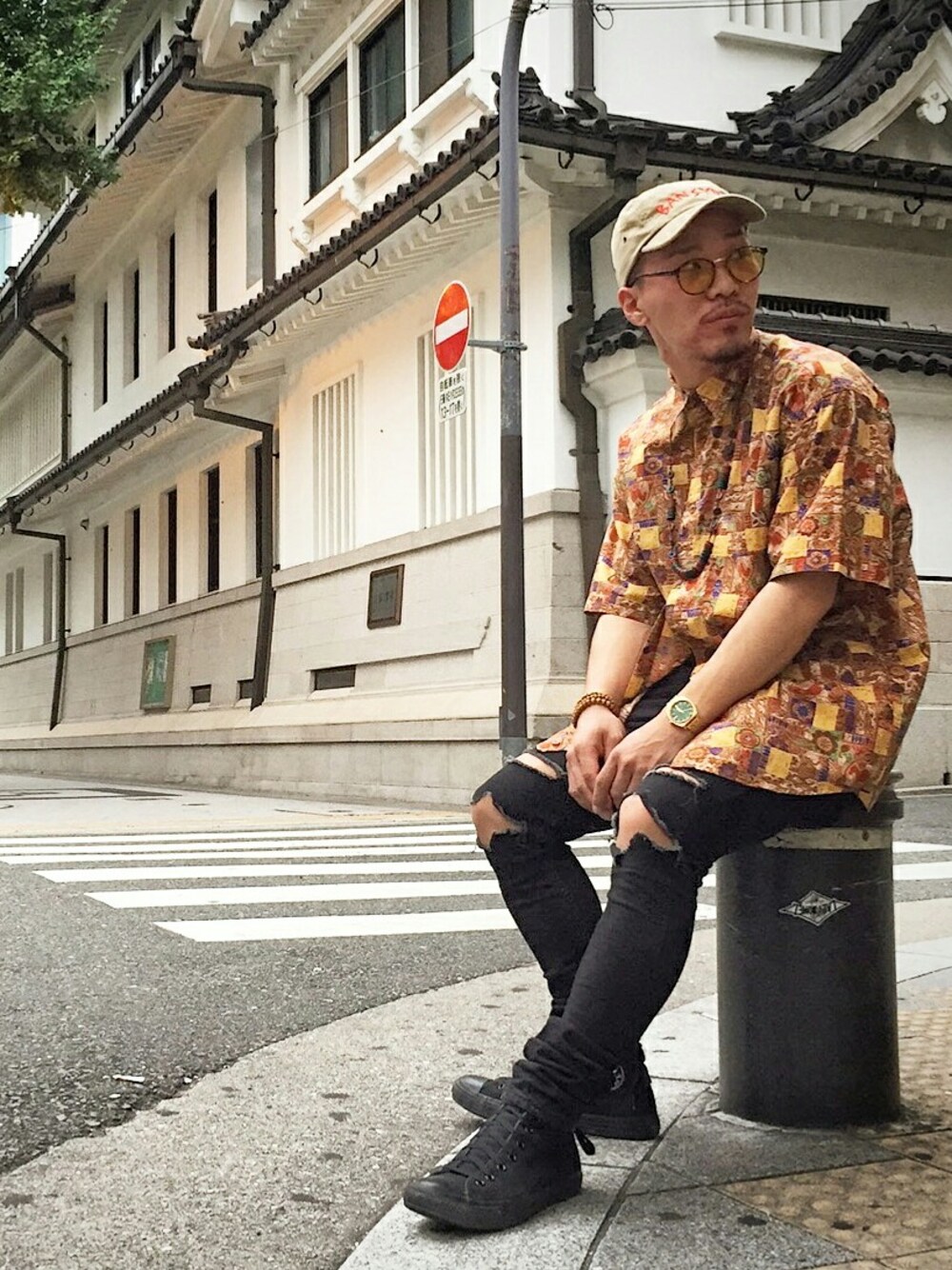 ブラック系のシューズを着用したメンズの夏コーディネートの1枚目の写真