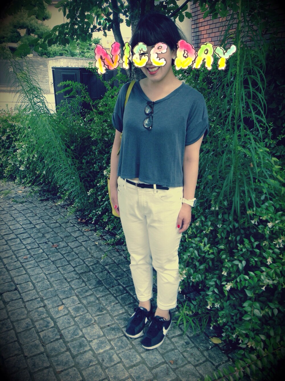 パンツ UNIQLO Tシャツ Forever21 お友達と近くの公園でバトミントンした後、新宿でハンバーガー食べてお買い物❁ Tシャツ変わっただけだけど。楽チン♩¨̮⑅