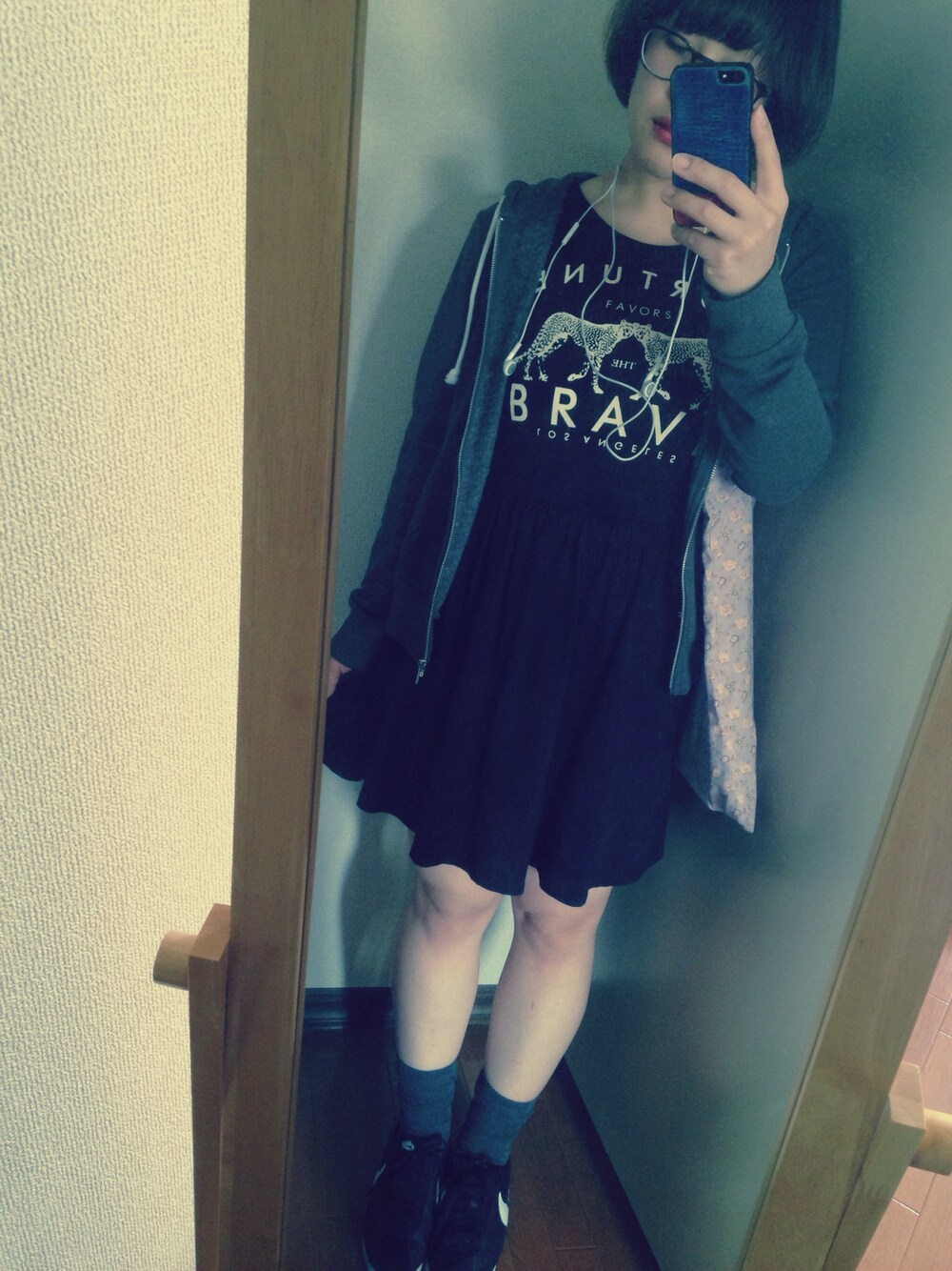 パーカ:H&M ワンピ:FOREVER 21 ソックス:靴下屋 メガネ:JINS レポート終わって、清々しくて、お散歩行って来ました。