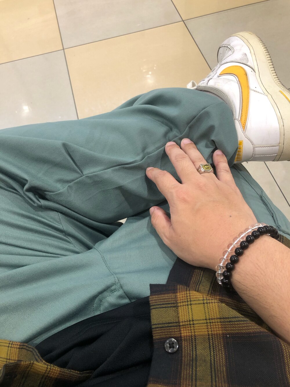 yoheeeei-heyのカーゴパンツ「ワイドテーパード 裾ドローコード タックミリタリーカーゴパンツ」を使ったコーディネート