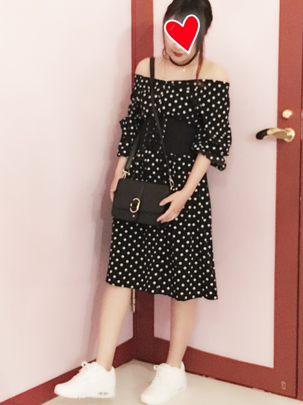 久しぶりにエアーマックス♡♡ 前もチョイスしたドットワンピを今日はオフショルで💕