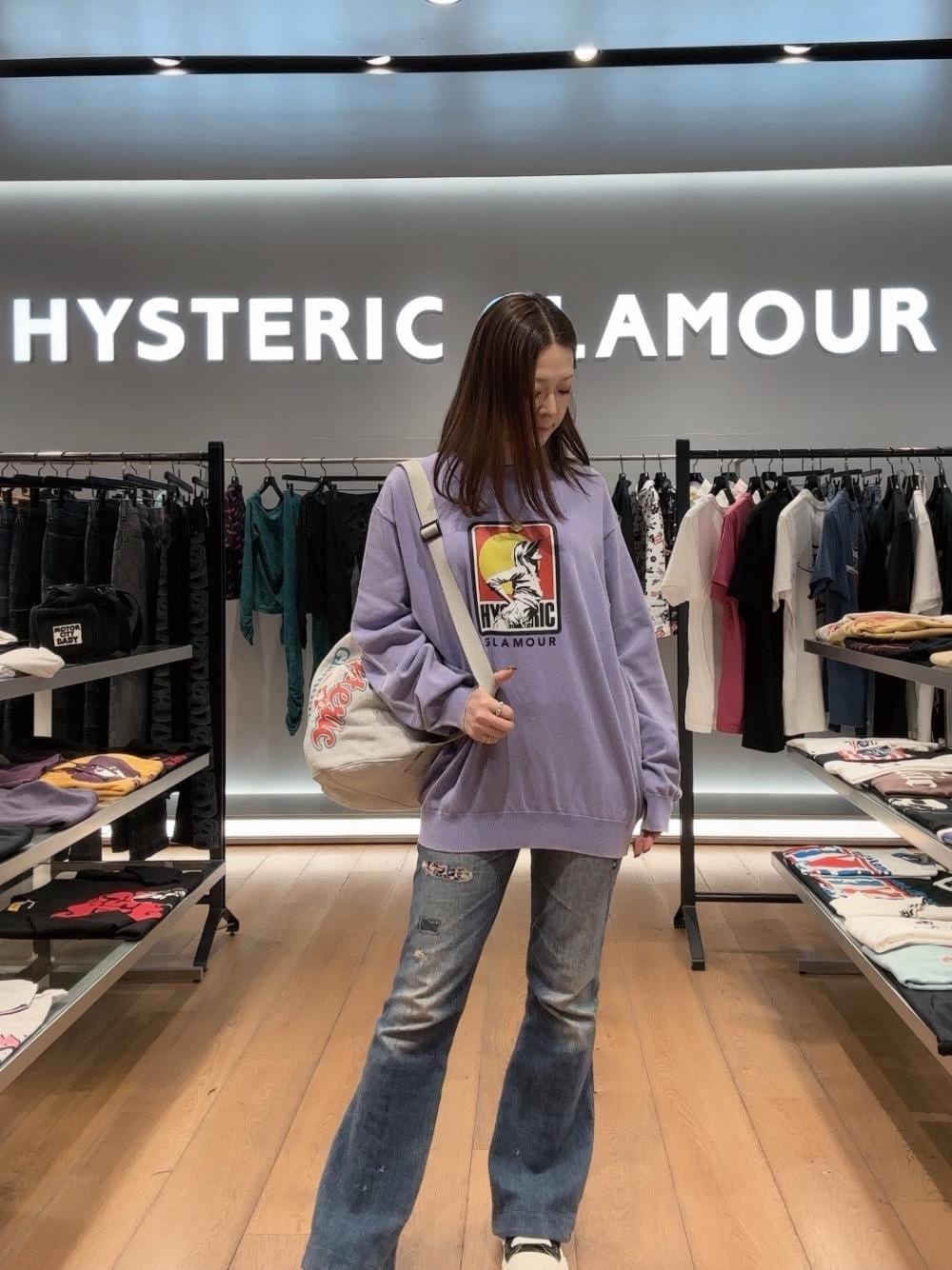 Ayaka(HYSTERIC GLAMOUR仙台店)のショルダーバッグ「COLLEGE COLLAGE スウェットショルダーバッグ」を使ったコーディネート