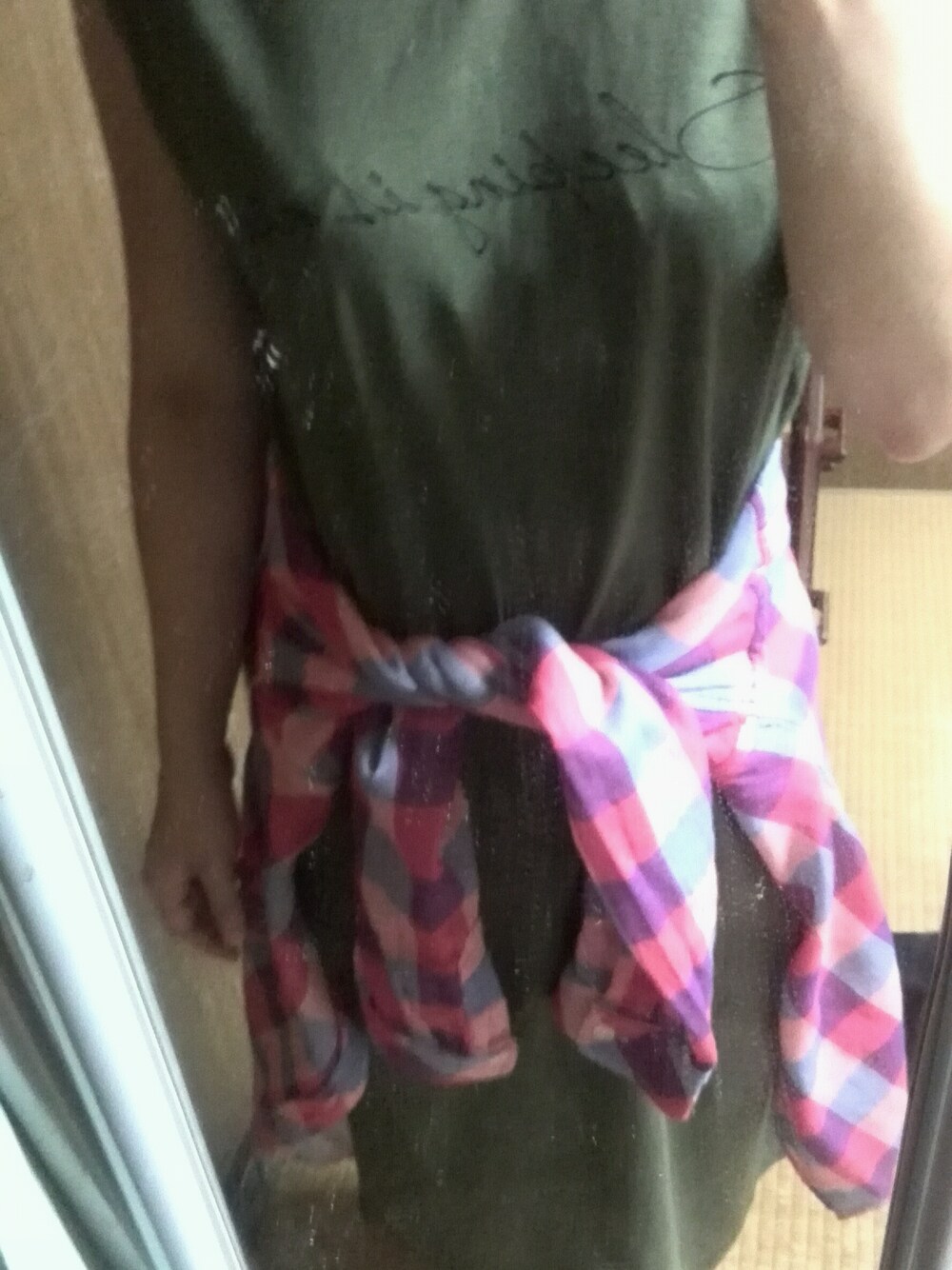 coenと古着のワンピがコラボ!! 明るいシャツに暗めな緑のワンピが、少し大人っぽさが出ますね٩(๑˙╰╯˙๑) とても楽なコーデです╰(*´︶`*)╯♡