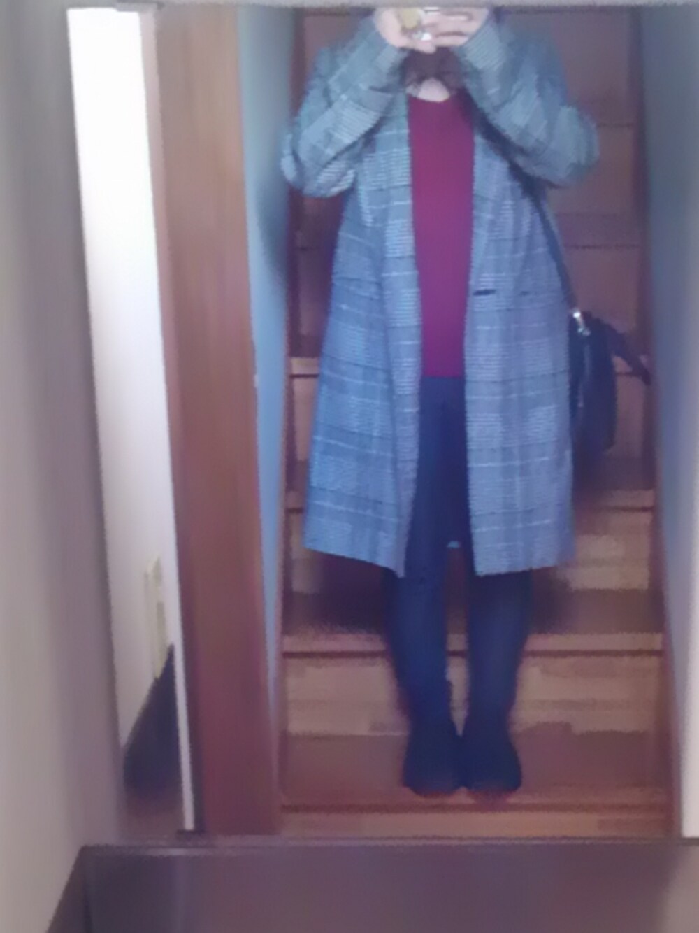 グレー系のチェスターコートを着用したレディースの冬コーディネートの1枚目の写真