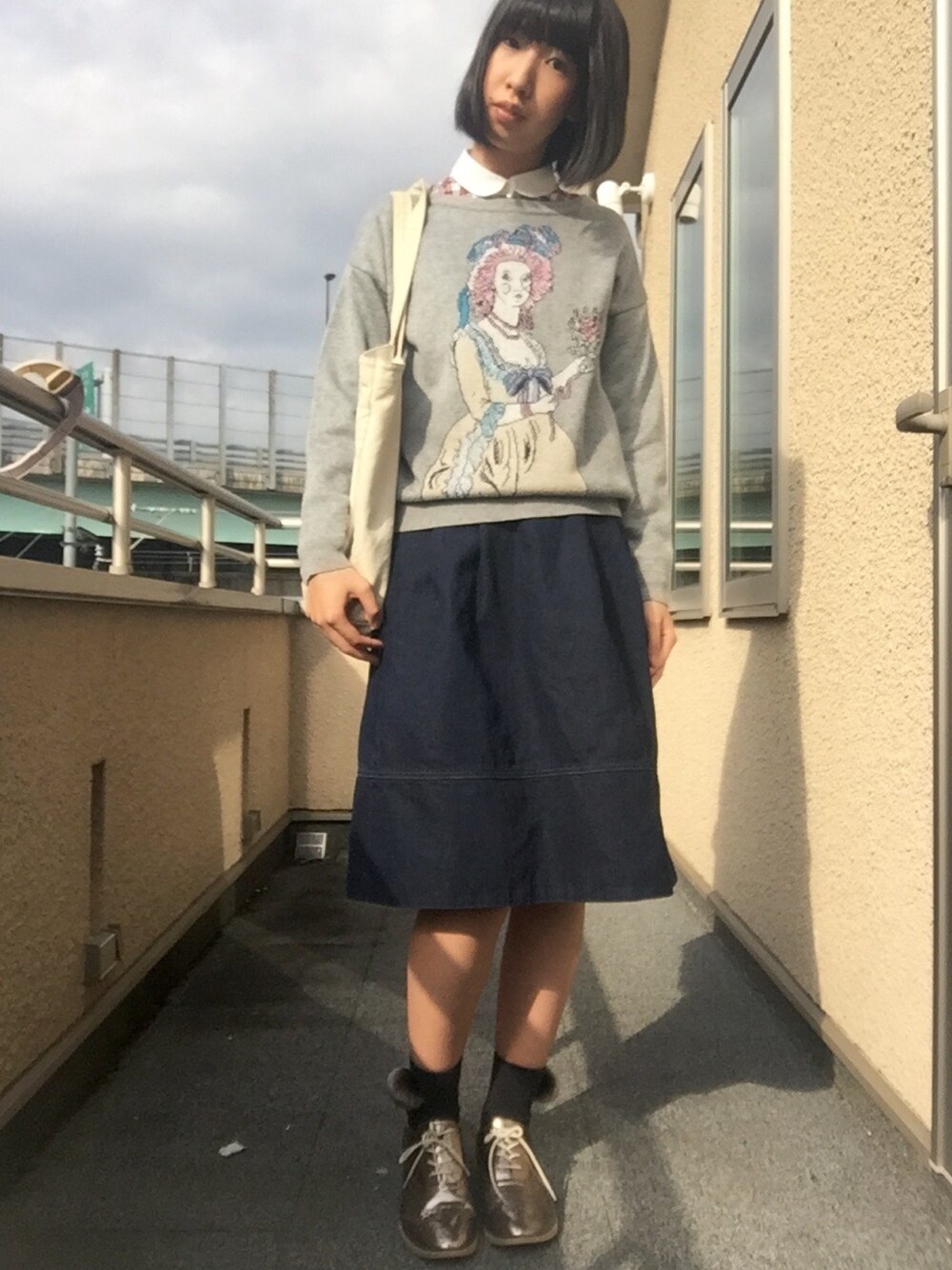 みなさま今日和‼️ いつも見て下さりありがとうございますっ💖 11月に入り、冬モード突入ですね😷💦徐々にニットやコートなど披露できたらなと思います😌😌😌みなさまの秋冬コーデも楽しみにしています👍✨ さて、今日はまた違うニットをデビューしました‼️マリー・アントワネットのニットです💖略して、マリー・アントワニットです笑🙆💕冬はバンバン着回すので要チェックです笑∑(゚Д゚)今日はリメイクシャツであわせてみました。 昨日のコーデもそうですが、私はモチーフものが好きみたいで。ディズニーが好き説とかありますが完全否定します‼️可愛いと思ったものが好きなだけです😗