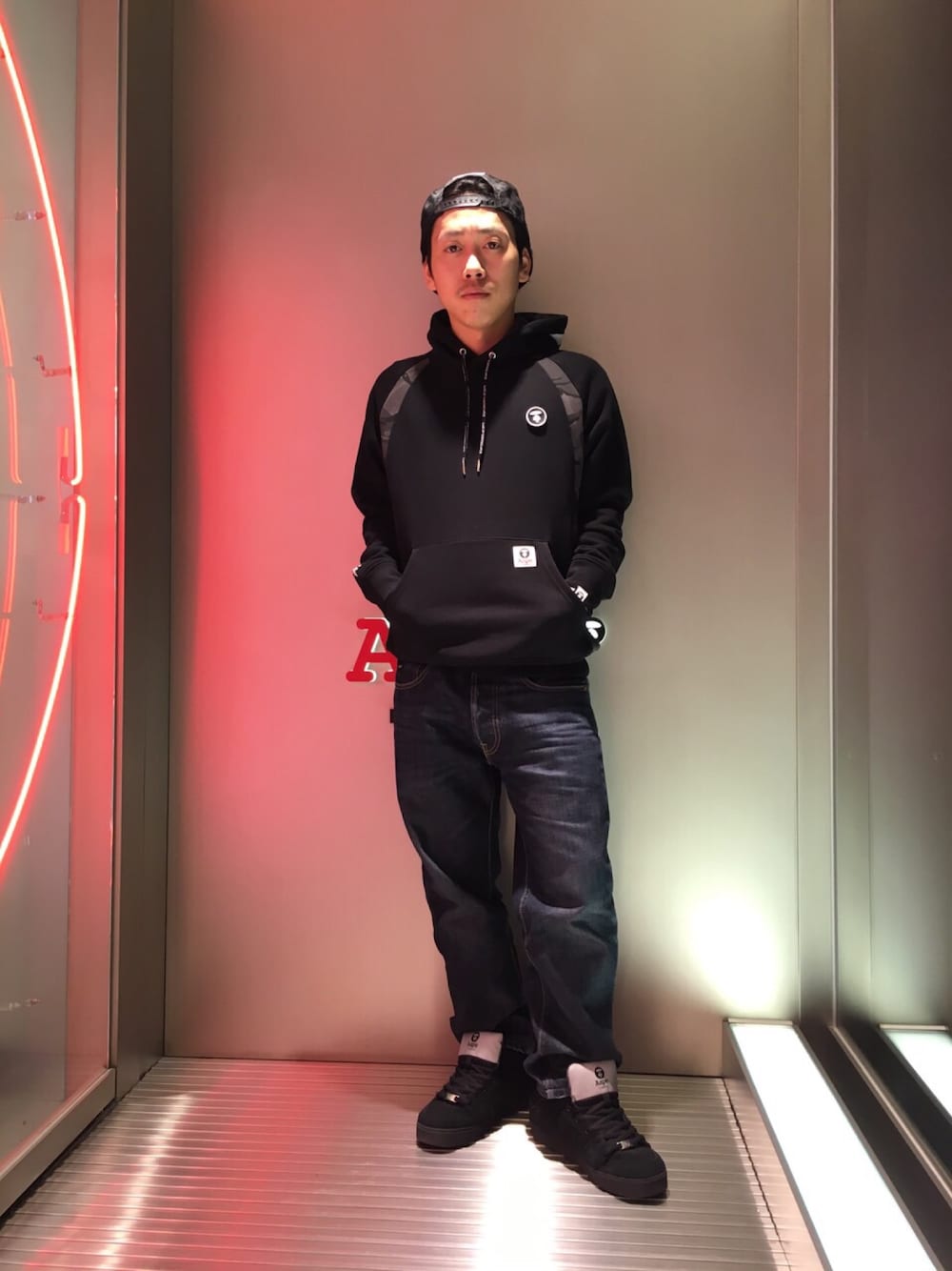 山下 龍介のパーカー「AAPE Basic Hood Sweat:ジップアップパーカー」を使ったコーディネート