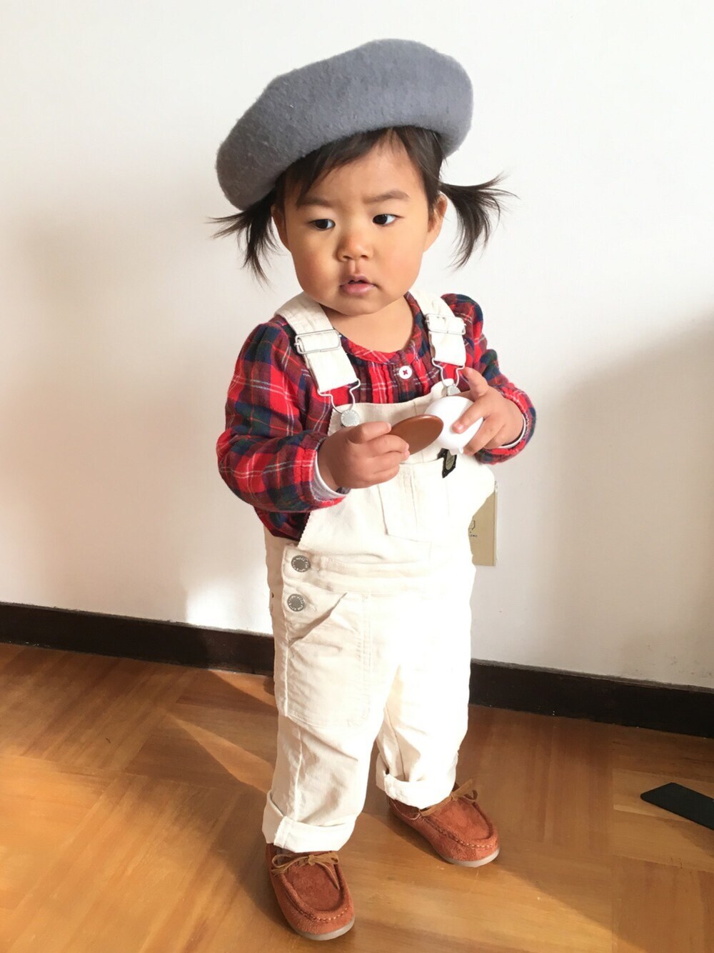 . こんばんは〜 最近、いいね、SAVEが増えて来て 嬉しいです☺️💕💕 いつも見ていただきありがとうございます。 . 今日はパパがお休みでイオン〜 初めてイオンラウンジに行ってきました💓 イオンに行き過ぎてレナも覚えちゃって イオン、イオンって言います🙄🌟 . 今日は白のサロペット💓 初めて着たけど中に着るものを 迷ってしまった〜😚