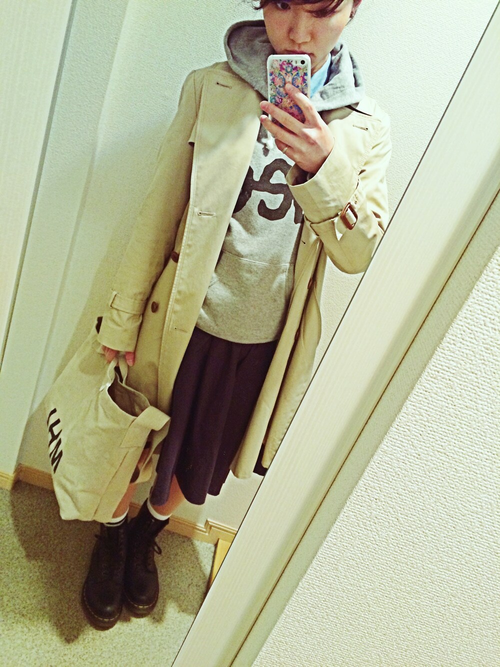 今日は雨なので ブーツは必須! このトレンチコートは 就活で洋服の青山で買ったもの。 勿体無くて普段でも使ってるけど 裏地がとれたり、すごく万能! これからも活用出来そうです^o^