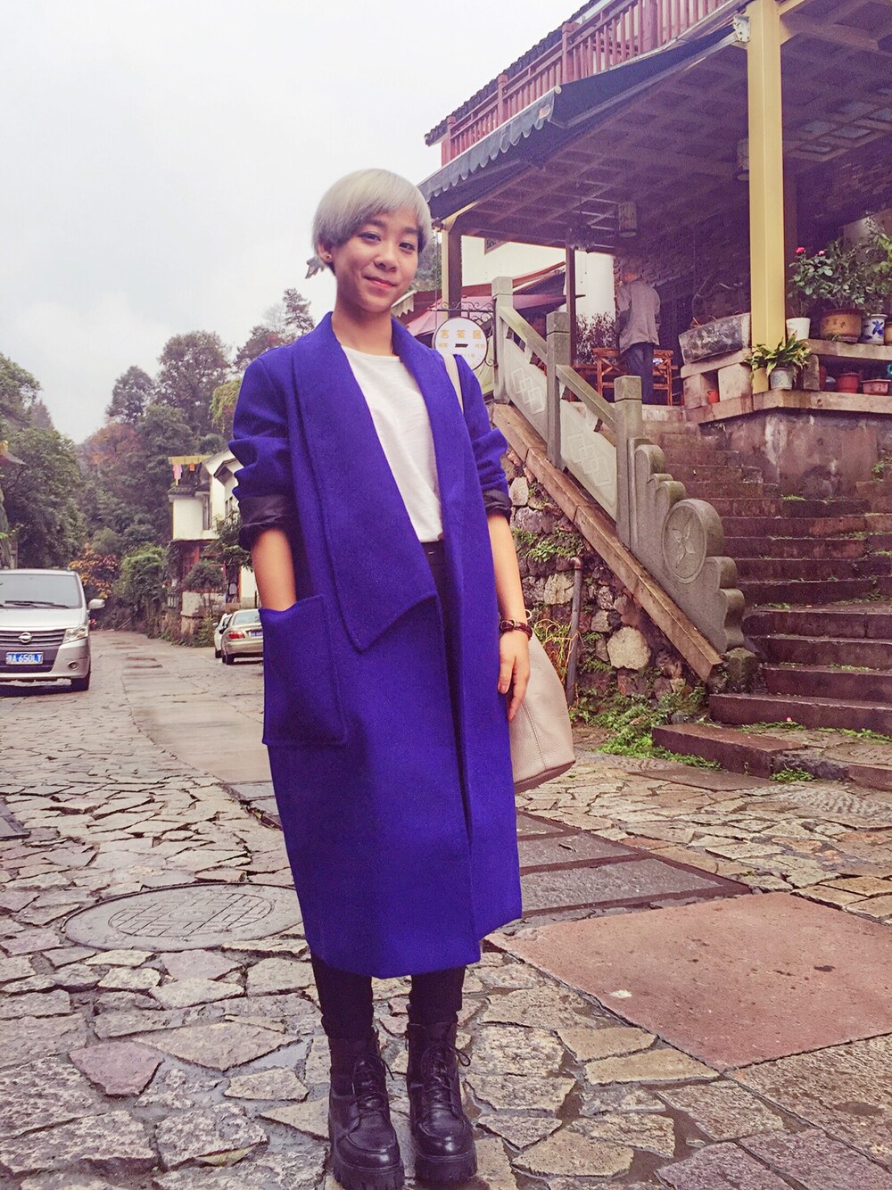 这件衣服的最大亮点在于它不规则的衣领。干练又帅气。还有,宝蓝色真的是一种能衬托气色又能提升气质的好颜色~