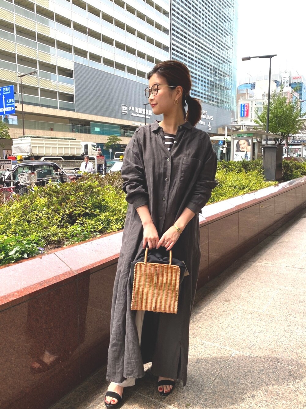 Mizuki のシャツワンピース「リネンシャツワンピース」を使ったコーディネート