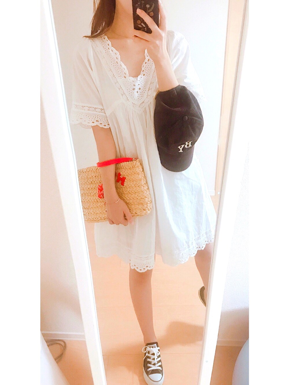 一気に気温が下がって あの猛暑が嘘のよう☁︎ ワンピースが可愛い感じなので スニーカーとキャップで 甘くなりすぎないようにしました☺︎