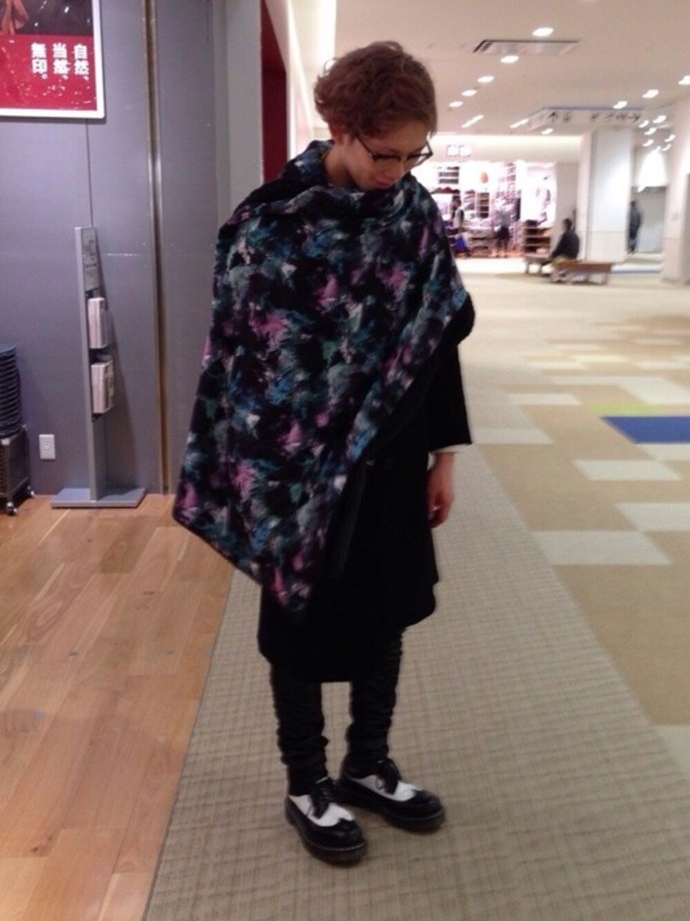 モード。 モノトーンコーデにBIGなチランドシアのストール巻いてアクセントに。