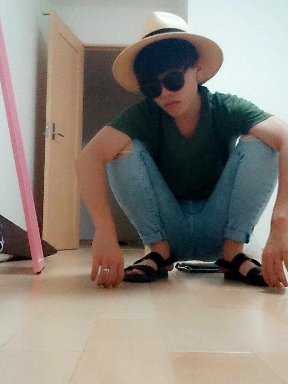 今日は先輩とショッピング 念願のマックダディーのパナマハット被っていこう サングラスは友達からのタンプレ ありがとう晋