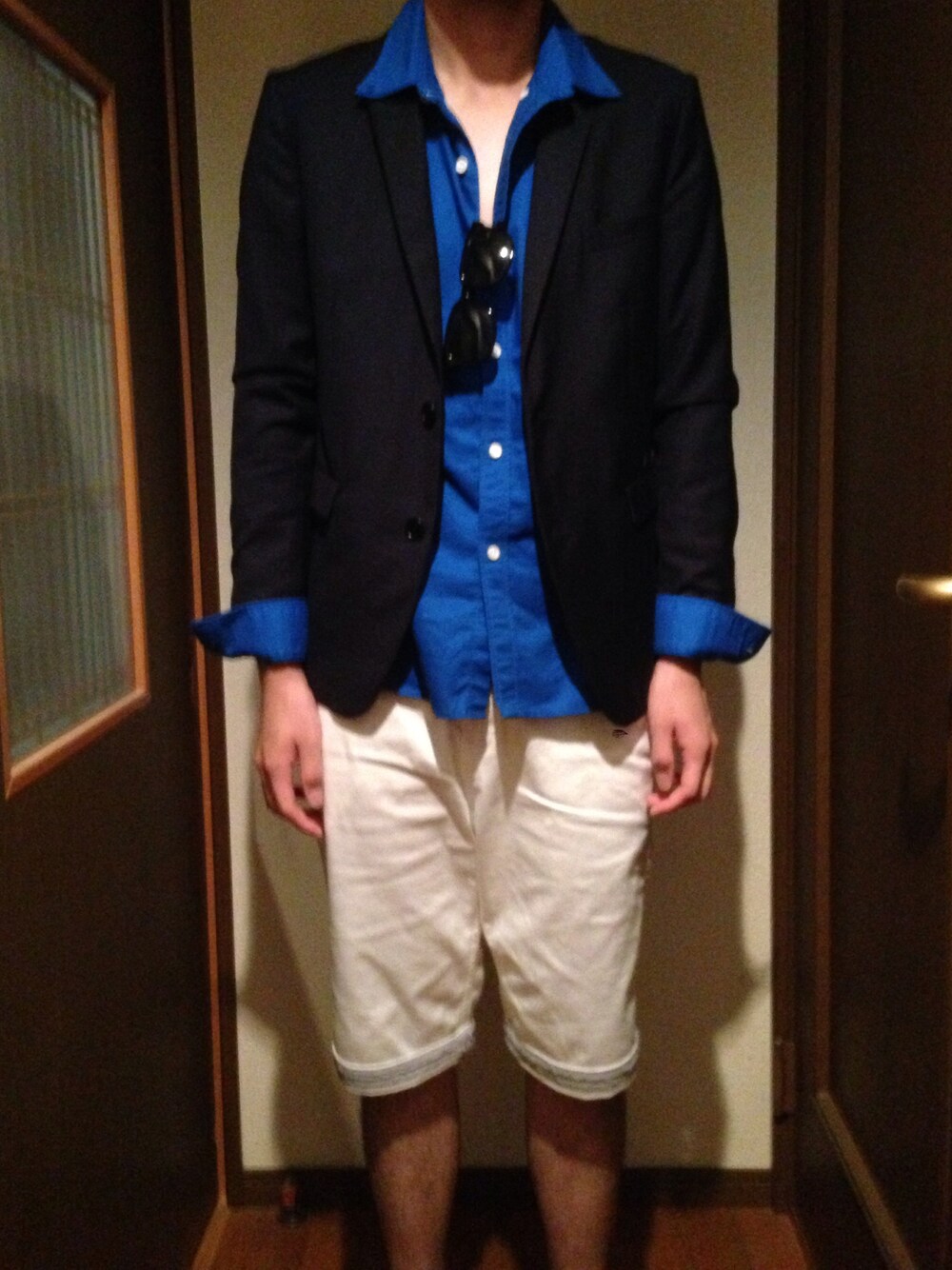 結婚式のコーディネートです。 カラーコードがブルーだったのでシャツとジャケットはブルー系で!