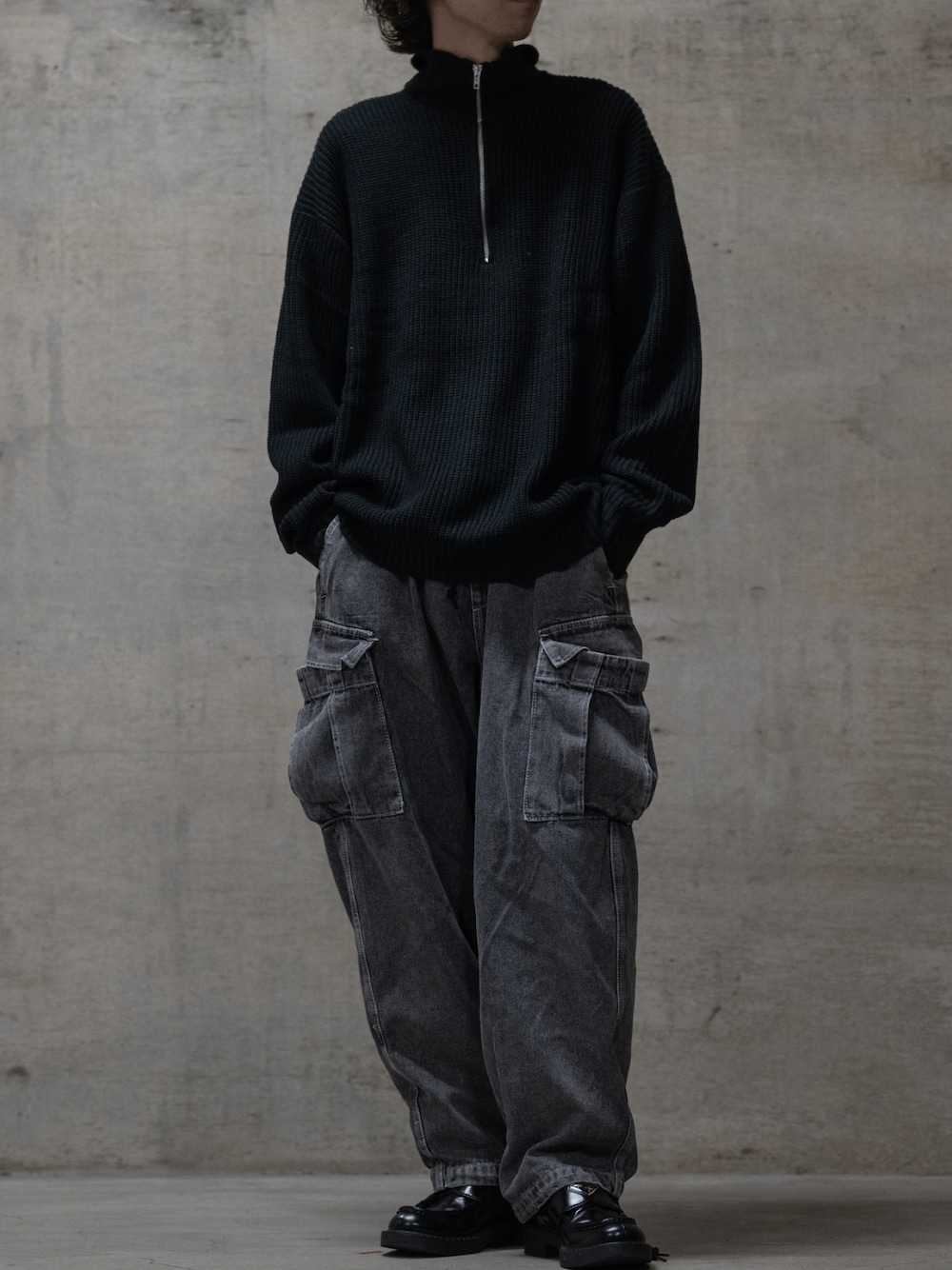 ます(JOHN'S CLOSET)のデニムパンツ「【i】12ozデニム イージーワイドカーゴパンツ」を使ったコーディネート