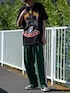 いつもいいね、お気に入りありがとうございます バンTとトラックパンツで古着MIXスタイルに THRASHERのトラックパンツはかなりワイドで裾を引きずりそうな丈感がトレンド感満載のアイテム