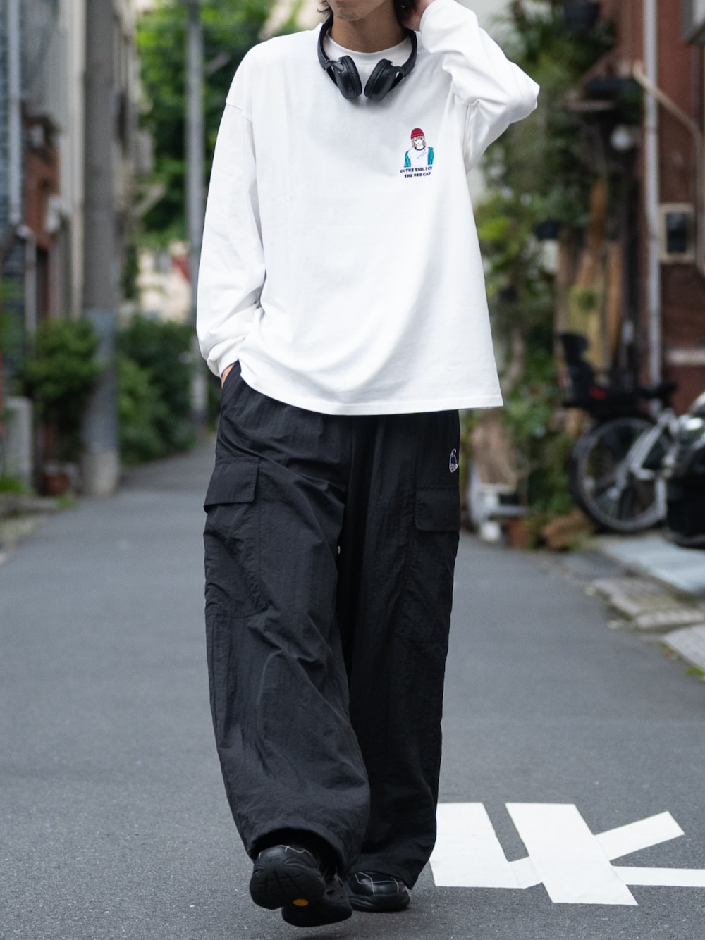 ます(JOHN'S CLOSET)のカーゴパンツ「【a-r】〔Red Cap Girl/レッドキャップガール〕ナイロン ワンポイント オーバーカーゴパンツ」を使ったコーディネート
