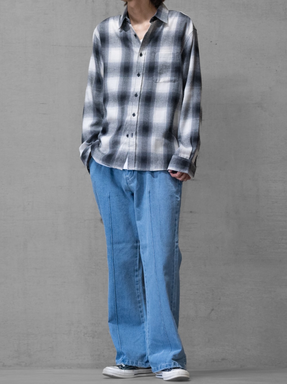 いつもいいね、お気に入りありがとうございます。 デニムとチェックシャツの王道コーデ デニムをフレアにすることで大人カジュアルに