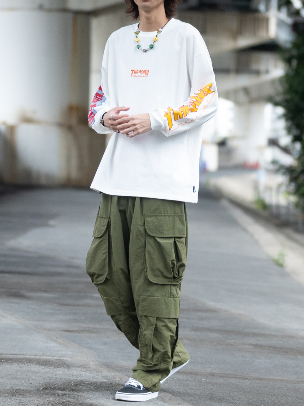 ます(JOHN'S CLOSET)のカーゴパンツ「【i】ナイロンワッシャー 4pocket ワイドカーゴパンツ」を使ったコーディネート