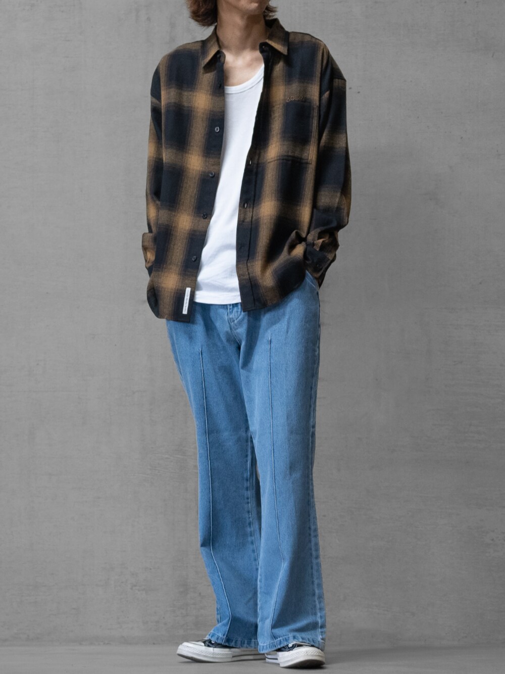 いつもいいね、お気に入りありがとうございます。 しっかりと入ったセンタープレスが特徴のフレアデニム きれいなシルエットと鮮やかなカラーがお気に入り