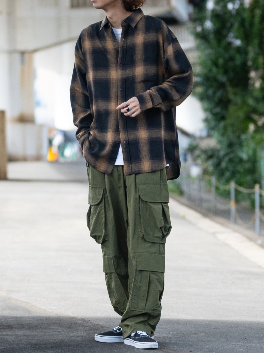 ます(JOHN'S CLOSET)のシャツ/ブラウス「【a】ソフトネル オンブレチェック オーバーサイズ シャツ 長袖」を使ったコーディネート