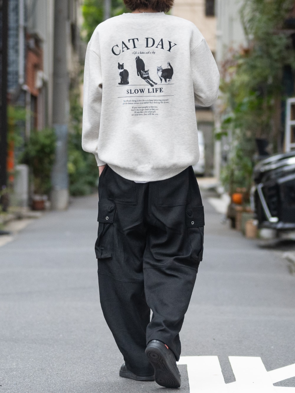 ます(JOHN'S CLOSET)のカーゴパンツ「【3】ポリツイル ワイドカーゴパンツ」を使ったコーディネート