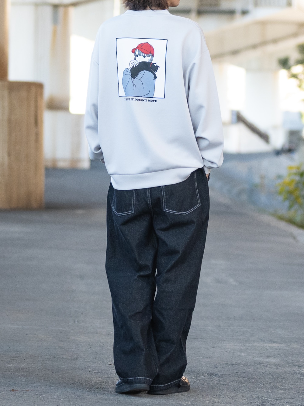 ます(JOHN'S CLOSET)のスウェット「【a-r】〔Red Cap Girl/レッドキャップガール〕シルクタッチダンボールニット バックイラスト ルーズシルエット クルーネックスウェット」を使ったコーディネート