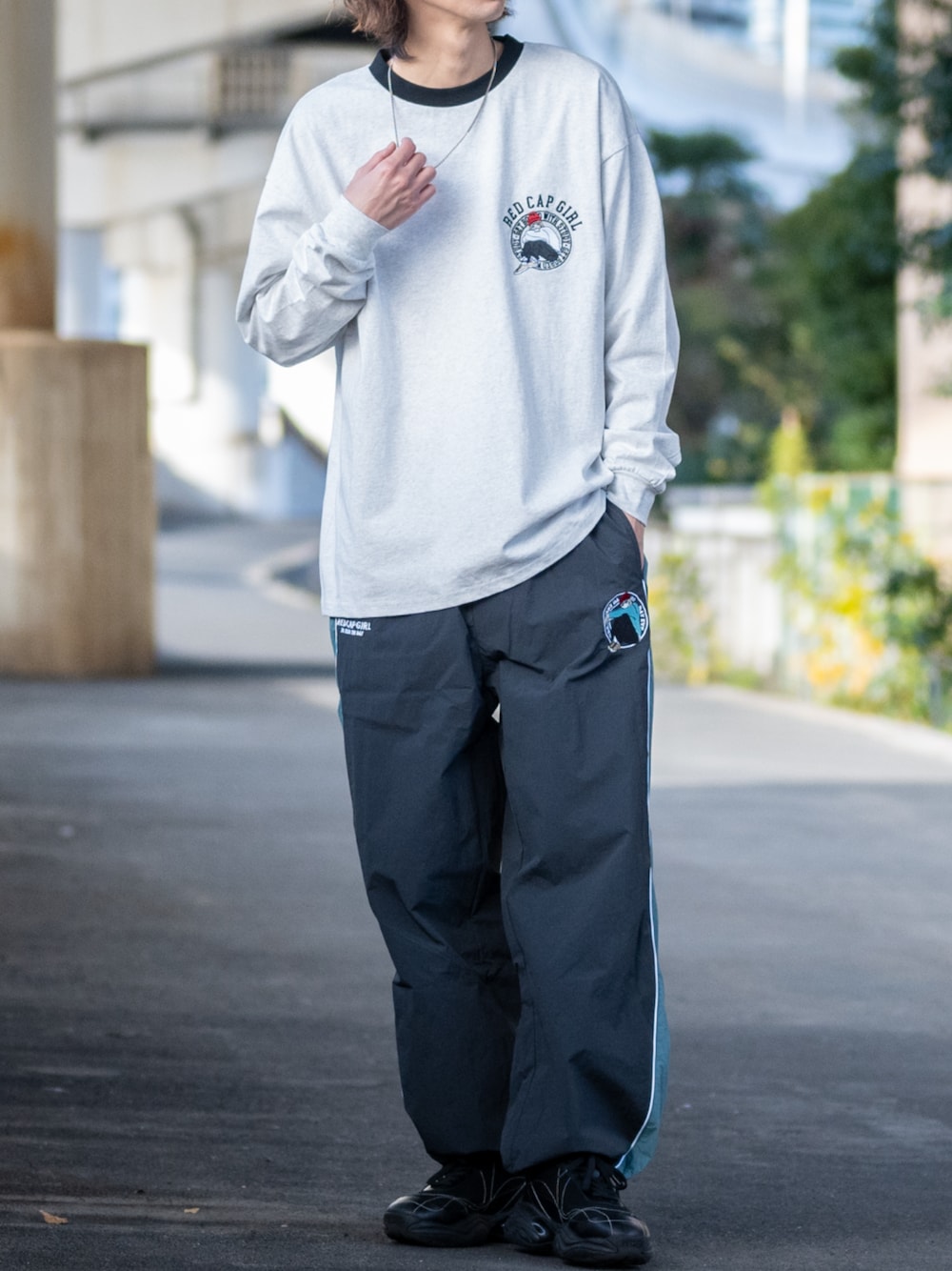いつもいいね、お気に入りありがとうございます。 RedCapGirlの新作アイテムのご紹介 リンガー仕様のワンポイント刺繍Tシャツとナイロントレーニングパンツ 早く春になってほしいですね