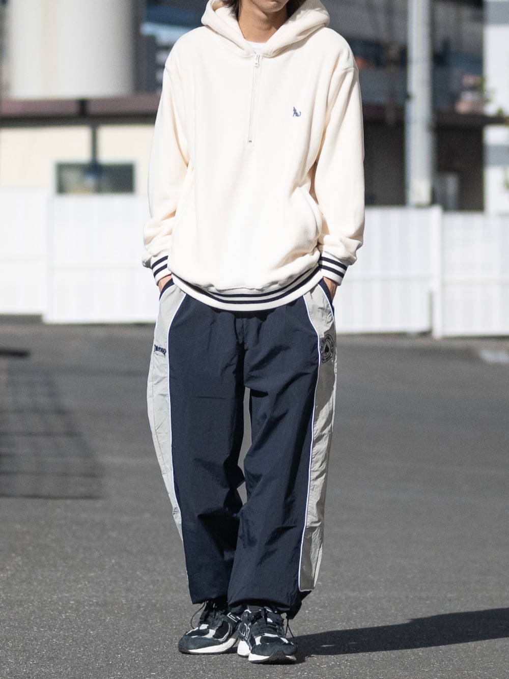 いつもいいね、お気に入りありがとうございます。 軽くて暖かいフリース素材のハーフジップパーカー しっかりとしたリブがデザイン性と防寒を高めています