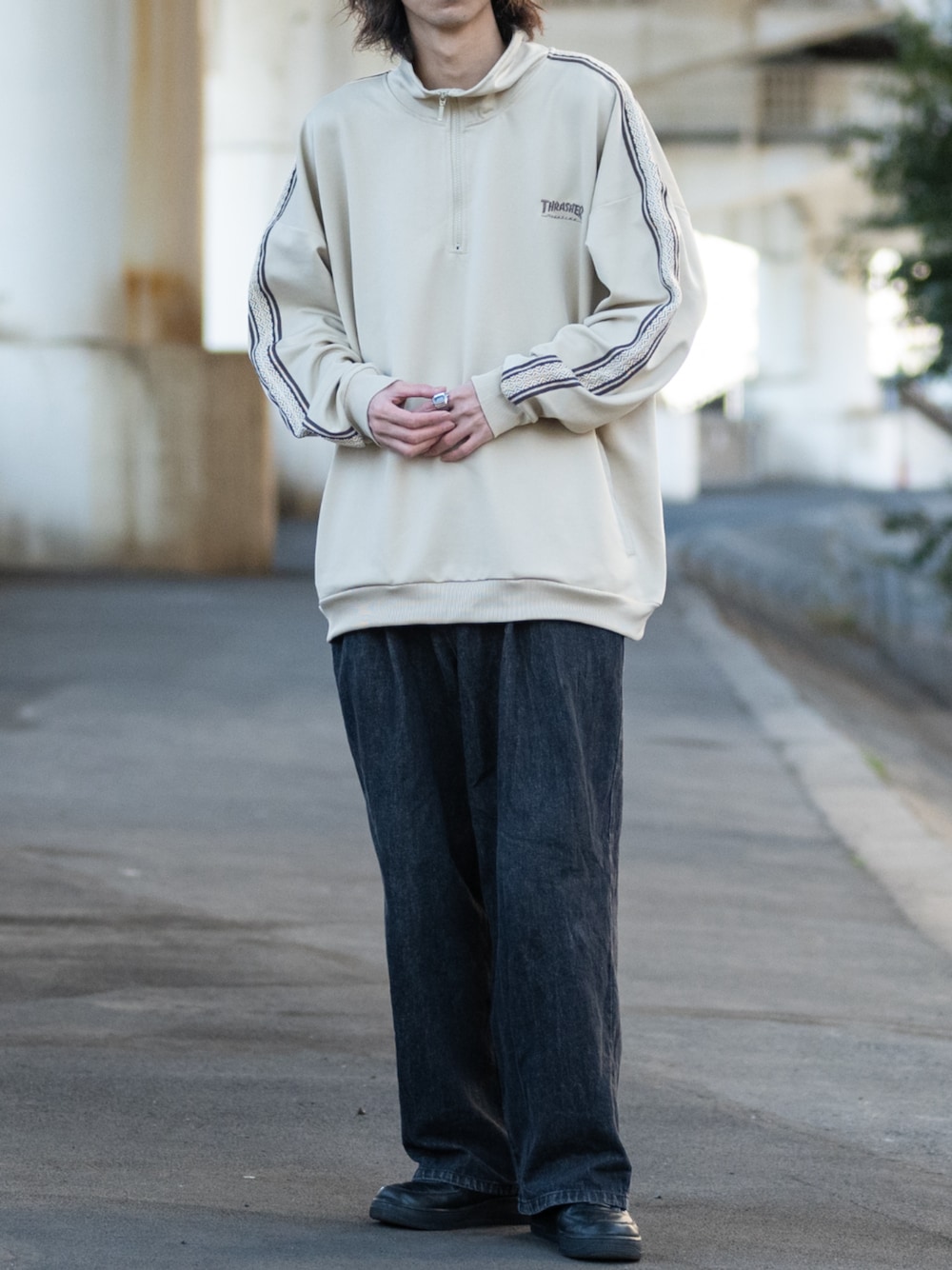 いつもいいね、お気に入りありがとうございます。 珍しいトラックデザインのハーフジップ ジャージ素材でオーバーなサイズが魅力