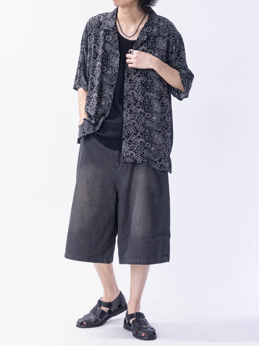 いつもいいね、お気に入りありがとうございます。 総柄シャツとデニムハーフパンツにグルカサンダルの夏コーデ