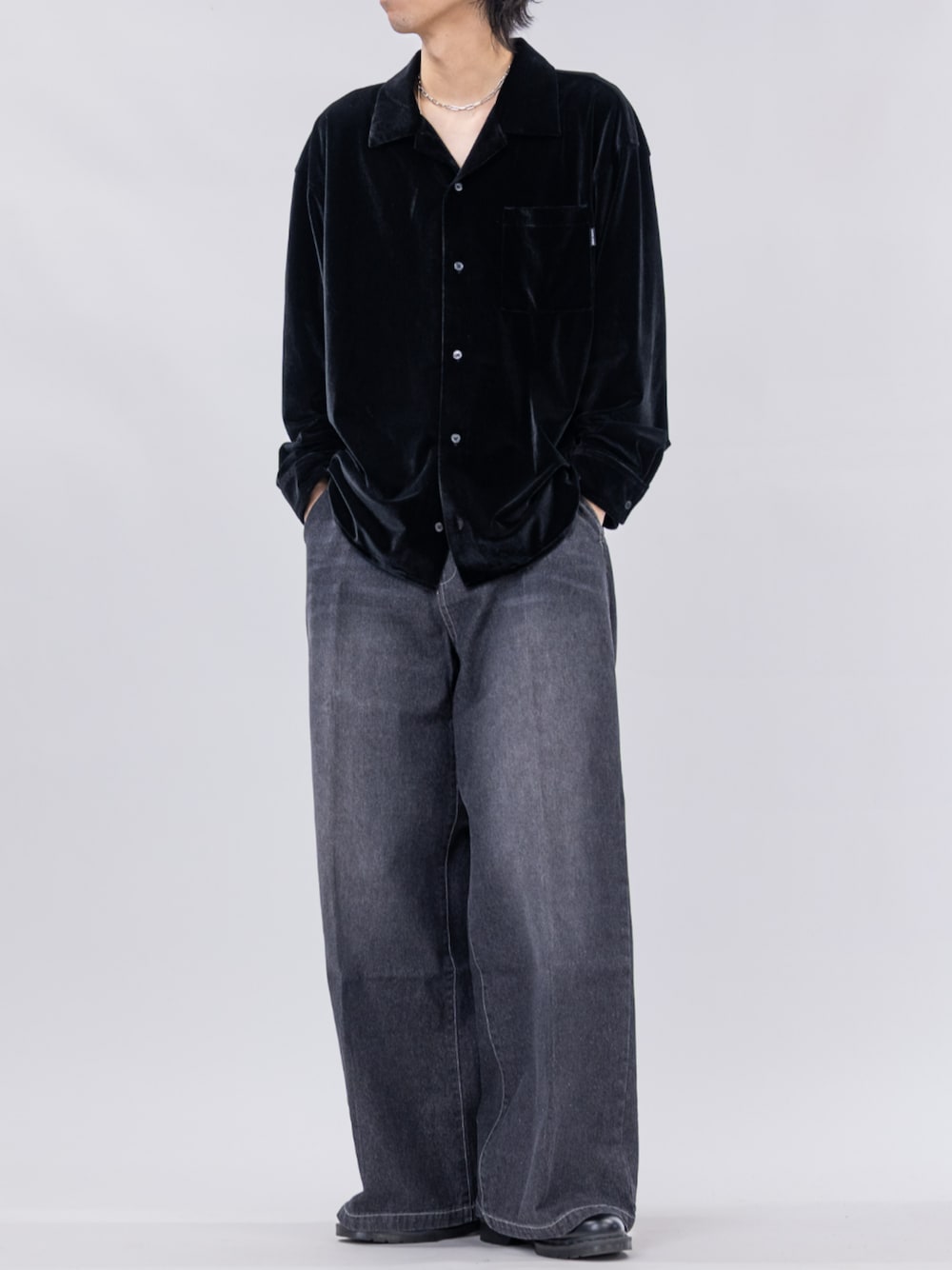 ます(JOHN'S CLOSET)のシャツ/ブラウス「【a】〔NAIVE MAGIC〕ルーズサイズ オープンカラー ベロアシャツ」を使ったコーディネート