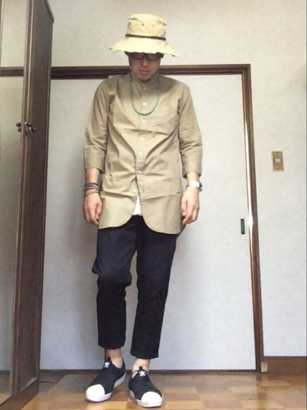 タンスを整理してたら一度も着てないシャツがでてきた😂 なので着てみた‼️ それにとても履きやすいスーパースターのスリッポンを合わせてみました💦 今日1日頑張れば明日はお楽しみが控えてます😎👍 楽しみ半分、悲しみもあります😢 あの伝説を最後見届けに行きたいと思います‼️