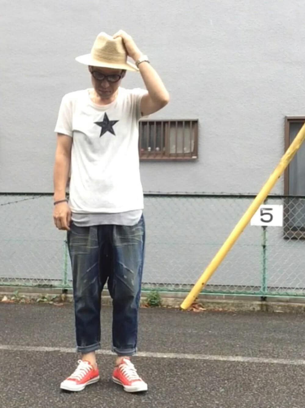 この夏からglamb始めました💦 このシャツとデニムパンツ、一目惚れして購入😎 しかしこのシャツ、透けすぎる🙌 なのでインにタンクトップを💦 デニムパンツもサルエルタイプでとっても履きやすく生地も薄手て柔らかいため今の時期でもガンガン履けそうです👍