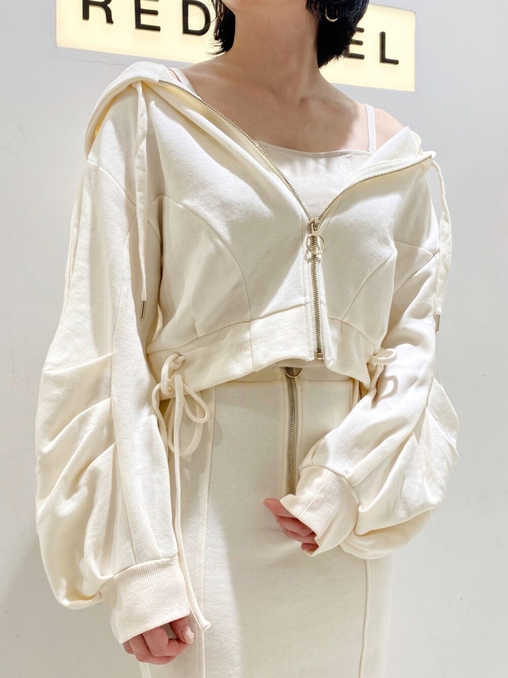 riho(REDYAZEL)のTシャツ/カットソー「裾リボンデザインジップパーカー」を使ったコーディネート