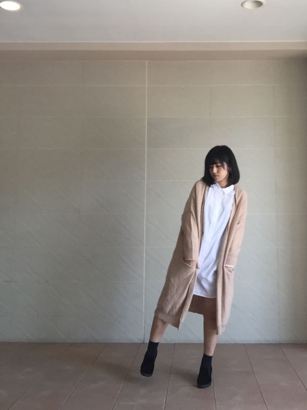 ちーちゃんのワンピース/ドレス「(GU)ボーイフレンドシャツチュニック(長袖)」を使ったコーディネート
