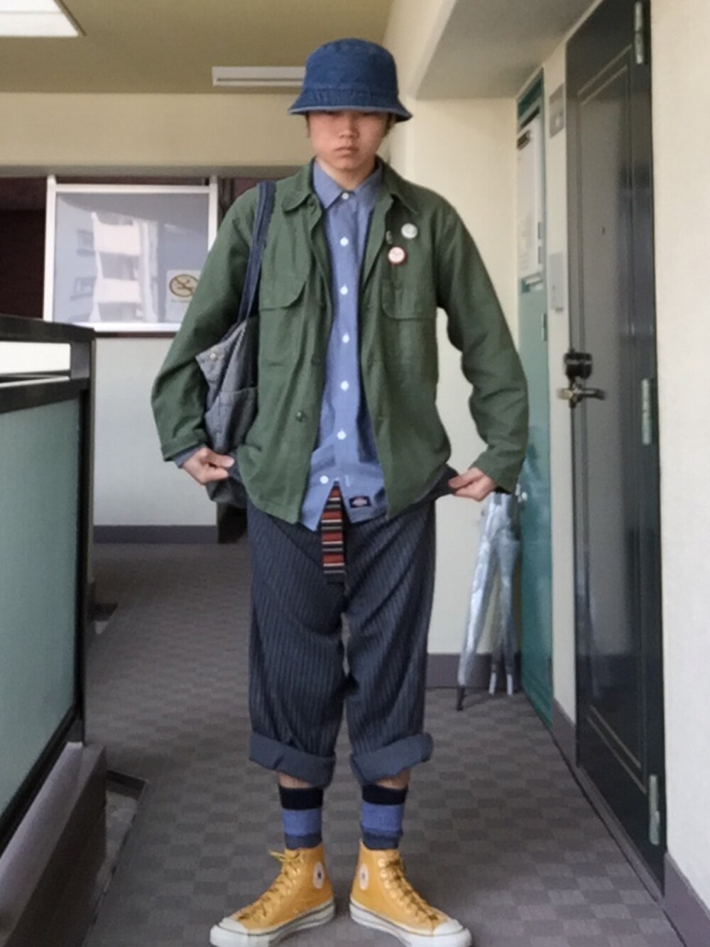 近くの古着屋さんで出会えたおそらく70年代のビックパンツであろうパンツをこよなく着まわしてます今。の今日の服装