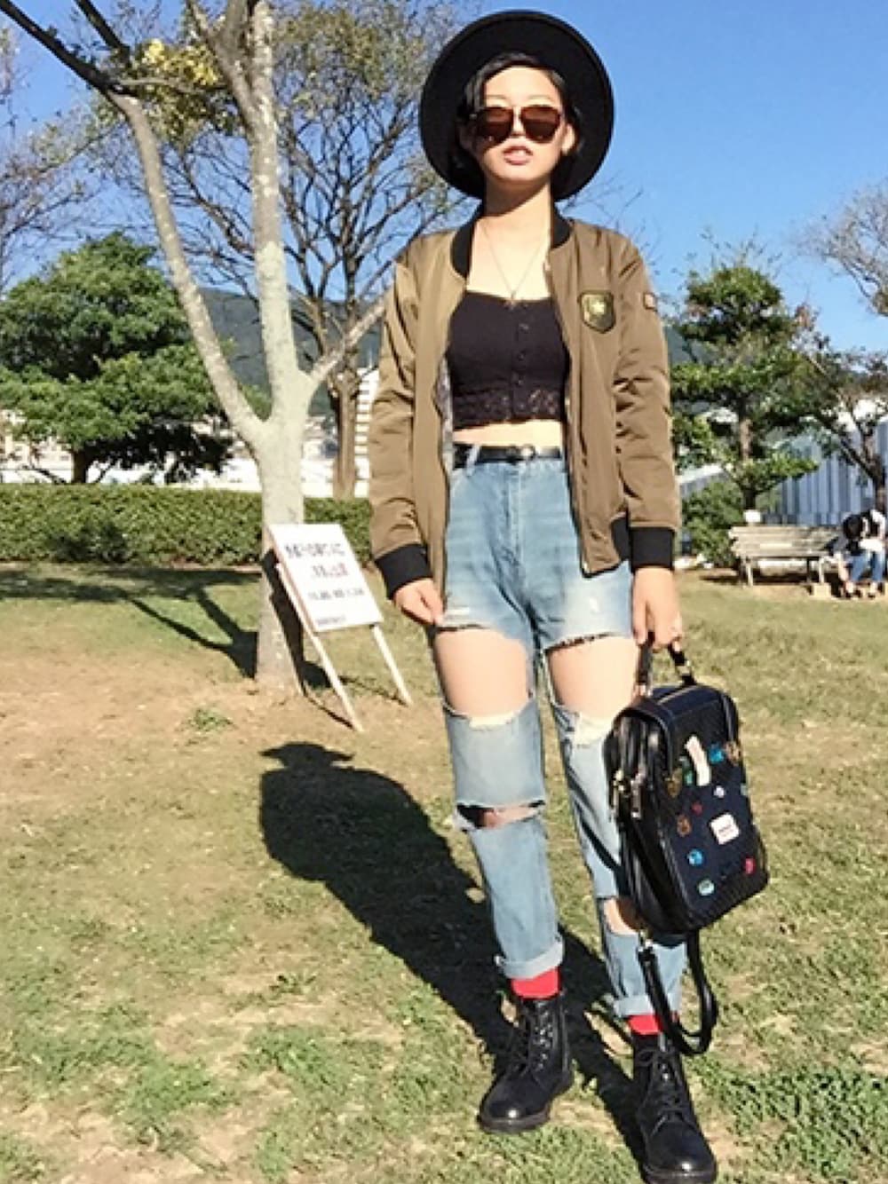 本日は友人とお出かけ♪ しまむらで購入したジーンズを 穴あけリメイクしました(^^)