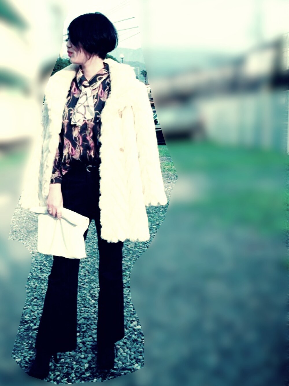 古着でまとめてみました 今日はファーコートが必要ないくらい 暖かかったです😊♪