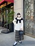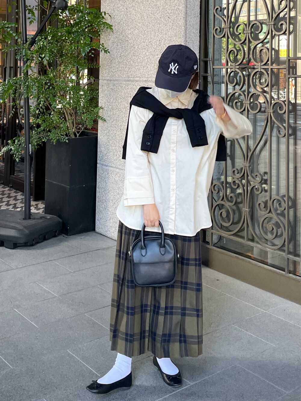 今日はCLEIOのシャツに秋らしいチェックのプリーツスカートを合わせました❤︎ 足元はパンプス、キャップも合わせて全体的にファッジ風なカジュアルスタイルです🧳
