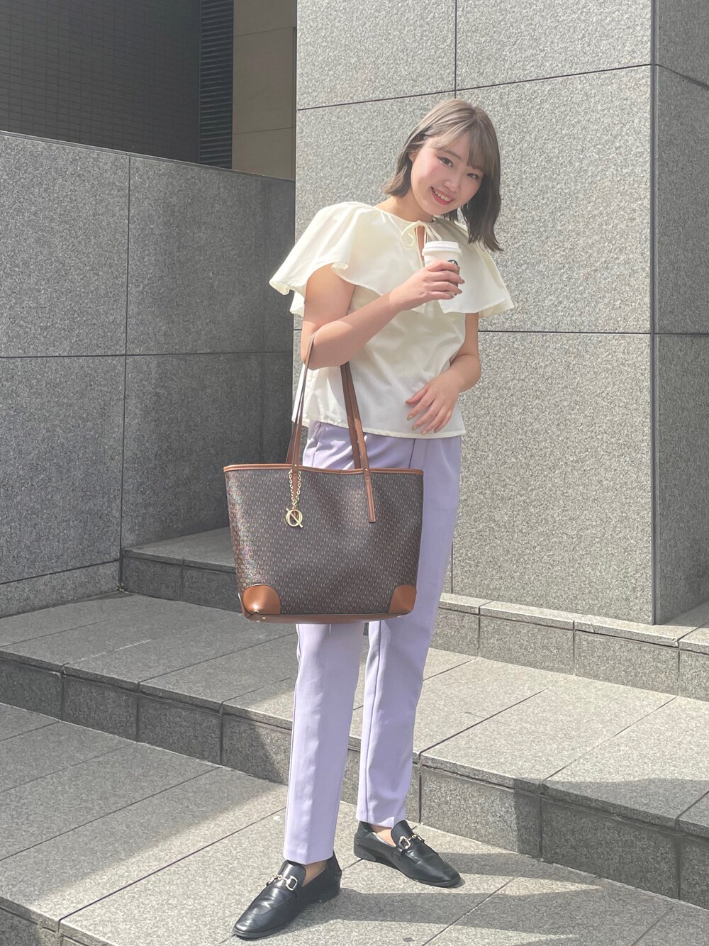 ご覧いただきありがとうございます🐇 オフィスカジュアルなスタイルで、カラーパンツを合わせてみました❤︎