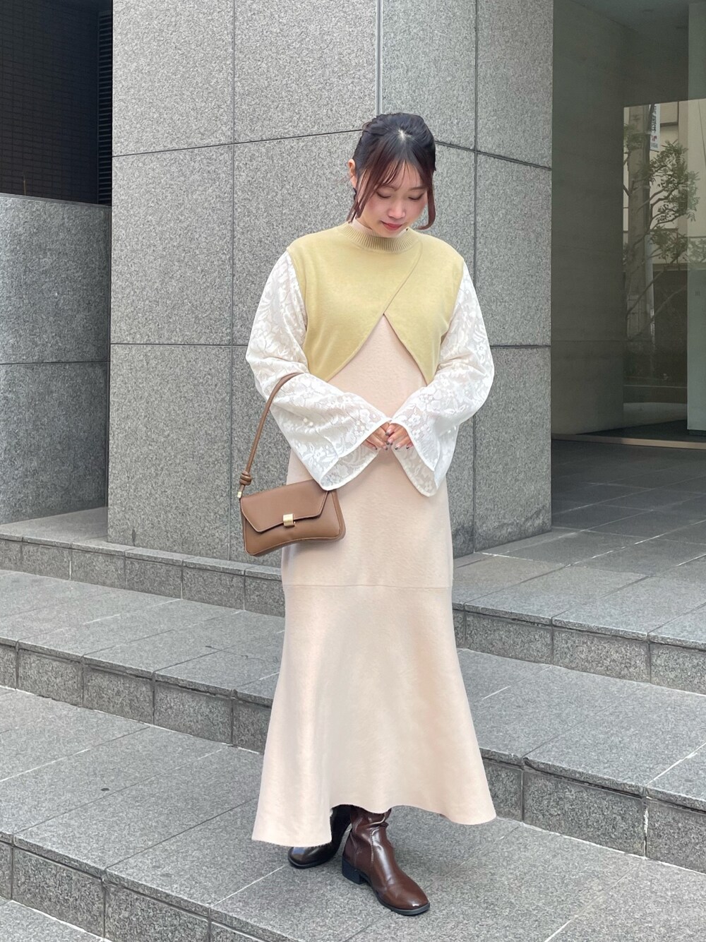 春先取りコーデ🌼 レースが女性らしく、ショート丈なので、ワンピースの上から重ねたり、ハイウエストのボトムスとも相性ばっちりです◎