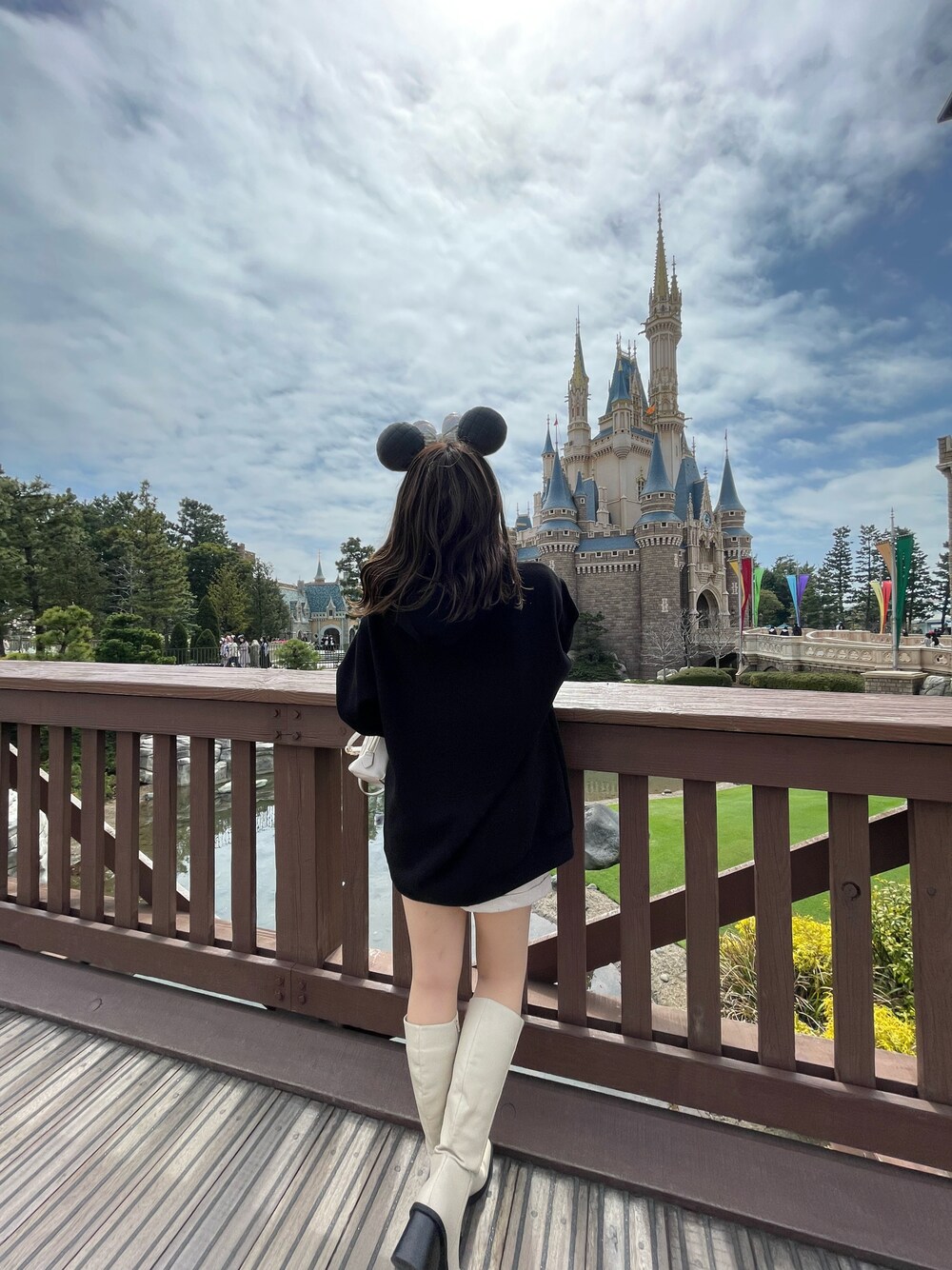 ちょっと前のディズニーコーデ🤍 お友達とモノトーンで合わせて行ったんだ このパーカー大好きなインスタグラマーさんがやってるアパレルブランドのなんだけどディズニーコラボでちょー可愛いの♡ さりげないミッキーさん◎ 大きめサイズ買ってビックシルエットも◎