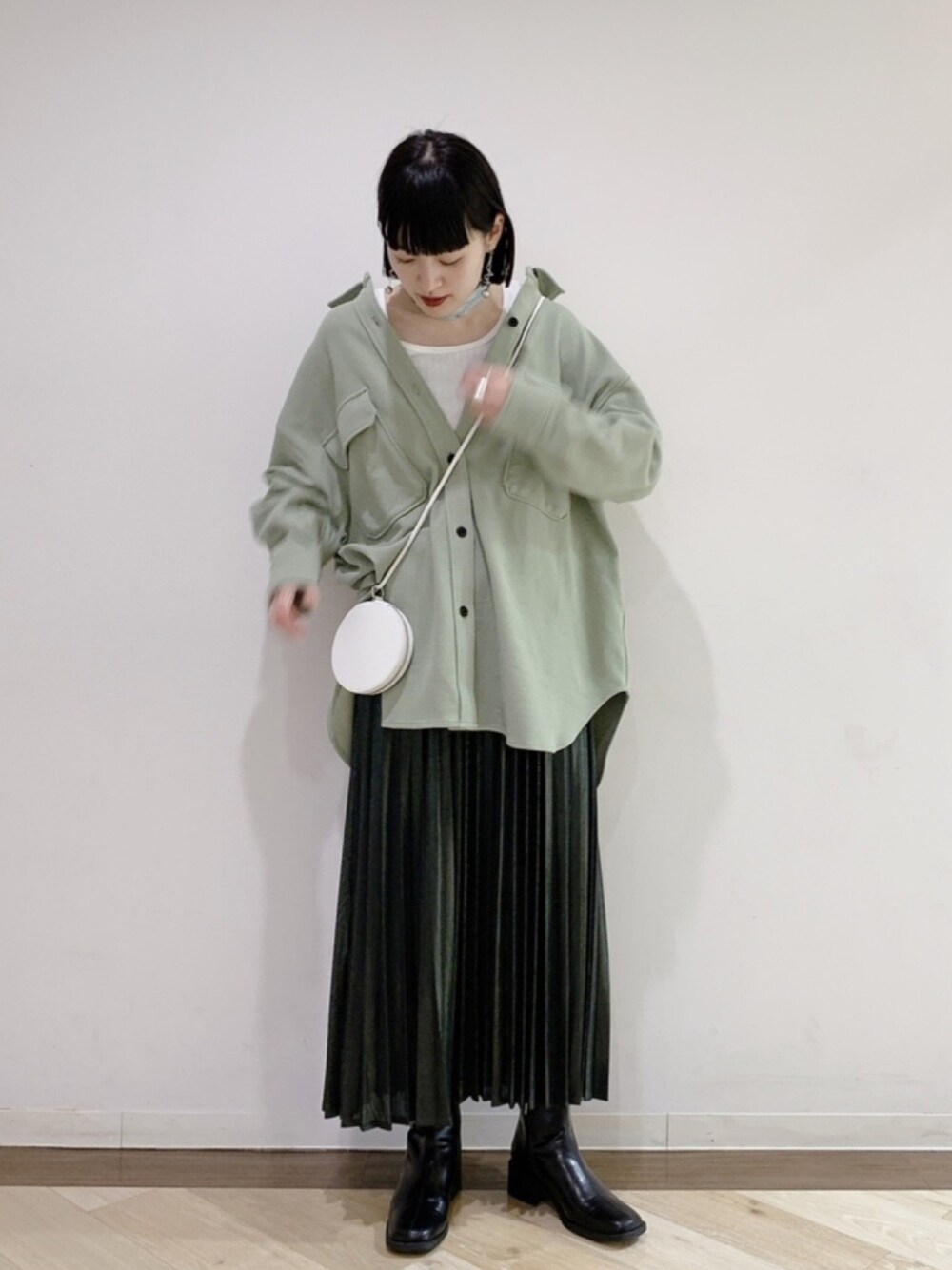 グリーンコーデ❤︎ 実はスカートもグリーンのラメが入っています💚