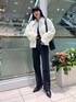 モノトーンコーデ! ボアのアウターは襟元がレザー調になっているので、大人っぽく着用して頂けます!